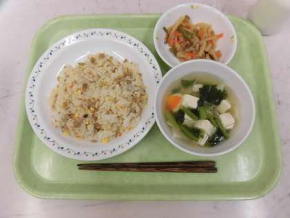 今日の給食は、そぼろずし、かまぼこ入りすまし汁、じゃがいものきんぴら、牛乳です。