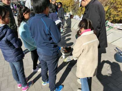 ご協力いただき、子供数人に一人ずつご指導いただき、