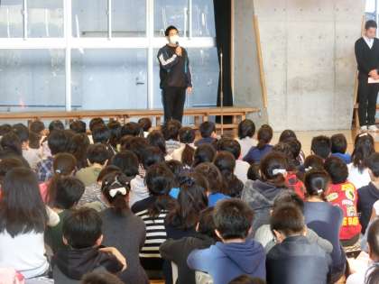 その人たちの分も加えて、元気にあいさつしましょう。」