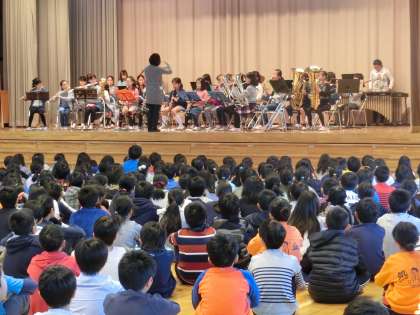 ブラスバンドクラブの演奏を聴かせてもらいました。