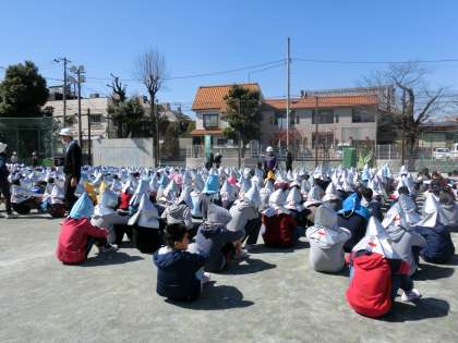 子供たちは、ハンカチでしっかり口をおさえて、避難できていました。