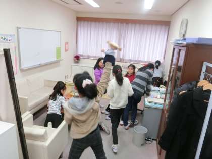 休み時間は、写真のように、子供たちの憩いの場にも