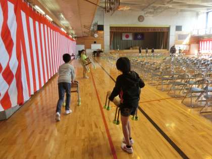 入学式の式場となる体育館の準備や