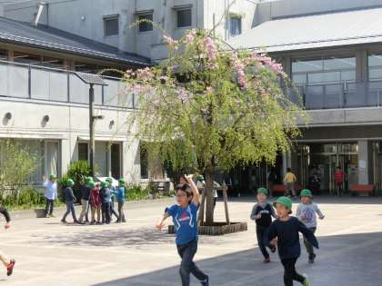 休み時間には、勢いよく校庭に飛び出す子供たちを