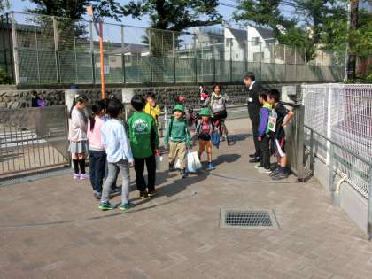 登校してくる子供たちを