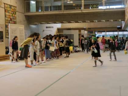 ”集まれ広場”でチャイムが鳴るのを待ちます。