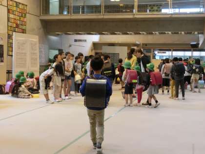 昨年度から、”集まれ広場”に学年ごとに並ぶようになりました。