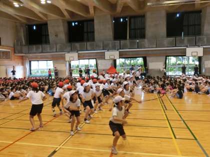 運動会の歌「ゴーゴーゴー」をリードし、