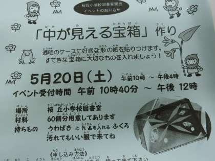 桜丘小学校図書室開放 イベント「中が見える宝箱」作り 始まります