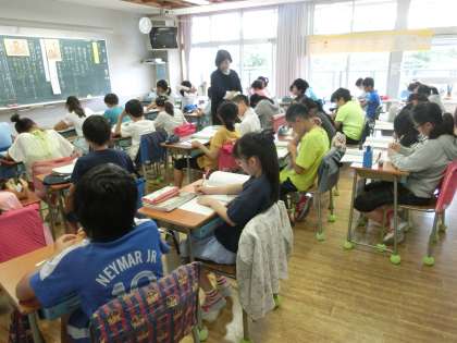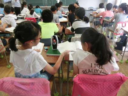まずは、桜丘小学校のよい点をみんなで出し合っていました。