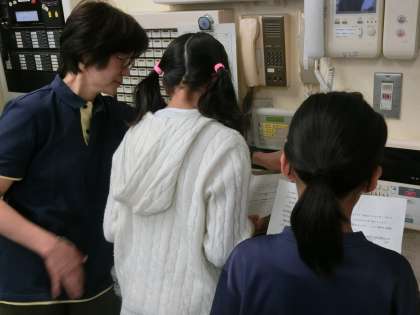 栄養士さんが、片付けの様子や、食缶空っぽの様子を、