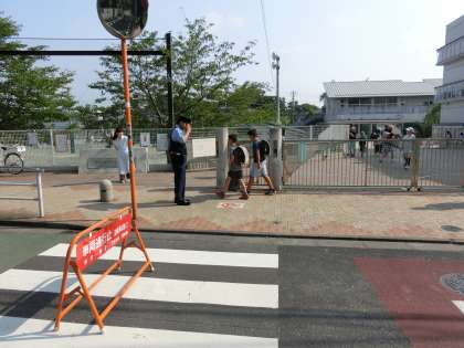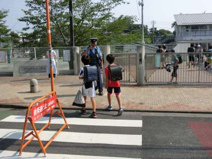 週のはじめ、おまわりさんとのあいさつで始まりました。