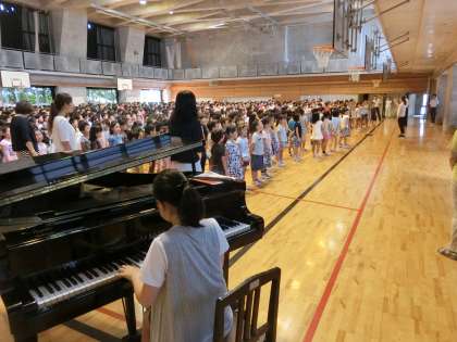 最後の校歌斉唱は、6年生女子がピアノ伴奏し、