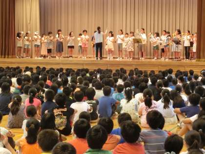 体育館で、4,5,6年生のフルメンバーで