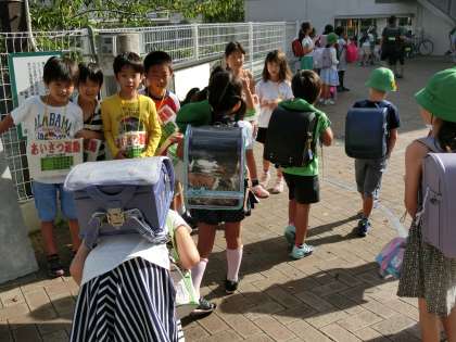 それを迎えたのは、2年生の「あいさつ運動隊」です。