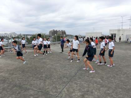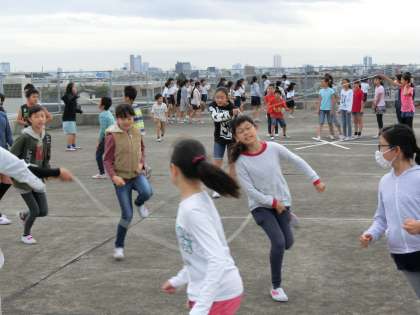 花の子体力つくりで全校で取り組んでいる長なわ跳び。