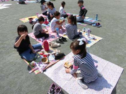 秋晴れの日に、みんなといただく手作りカレーライス、