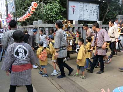 今日は、大太鼓や大人神輿に子供神輿も加わりました。