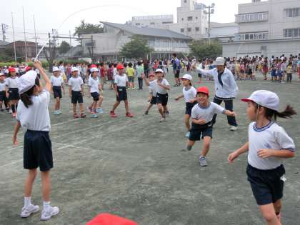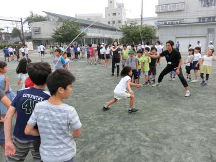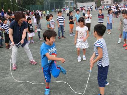 花の子体力つくり 長なわ跳び 担任の先生といっしょに
