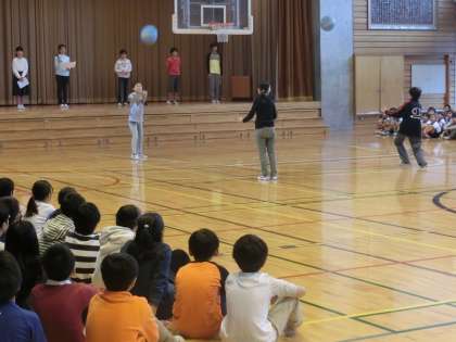 全校児童の見ている前で、