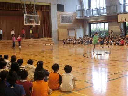 今朝の児童集会は、運動系クラブの活動報告でした。