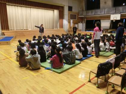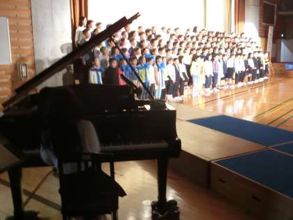 左右ヒナ段上で、一生懸命歌っている子供たちにも