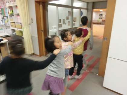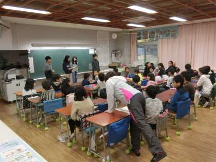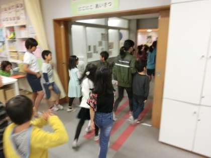 1年生をそれぞれの交流班場所から迎えに行ったり、