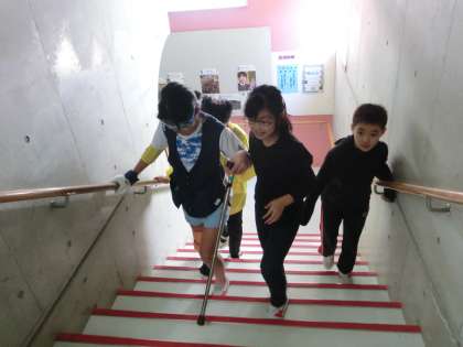 4人1グループで手や足、腕などに重しをつけ、目には特殊の
