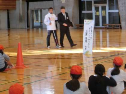 まずは、葭原選手がブラインドサッカーについて説明してくださり、