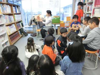 子供たちのために、図書室で「読み聞かせ」を