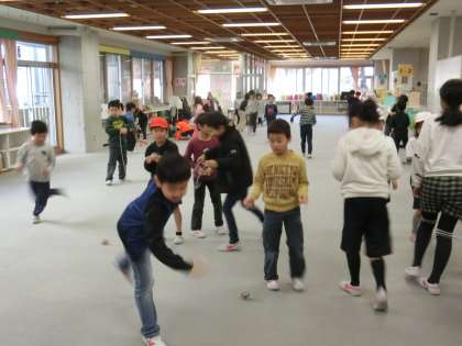 ”むかし遊び”のコマ回しやお手玉を楽しんでいました