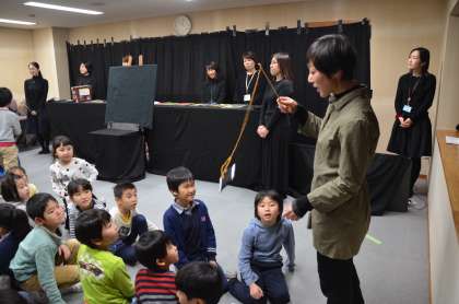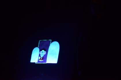 真っ暗な中に光る登場人物や、いろいろな道具を使った効果音。