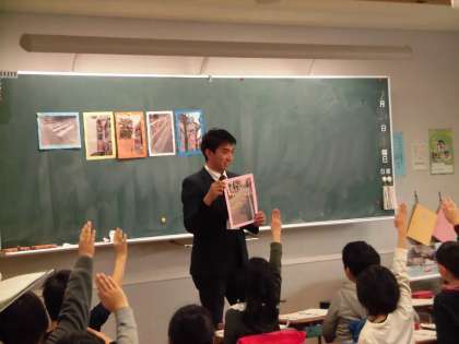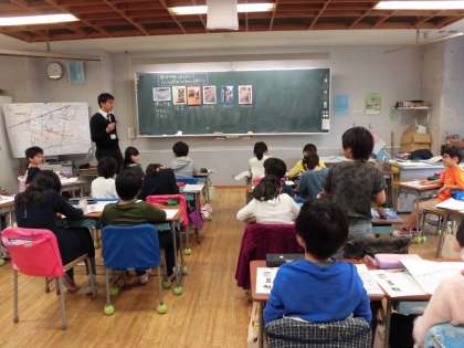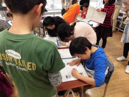 自分で考えた後、席を移動して友達同士で話し合いました。