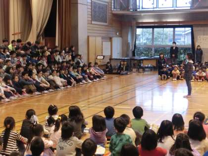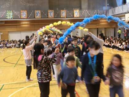 6年生と1年生が手をつないで、にこやかな表情いっぱいです。