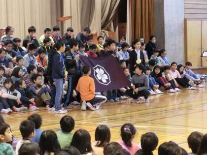 続いて、6年生から5年生へ、校旗が引き継がれ、