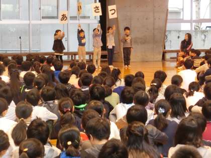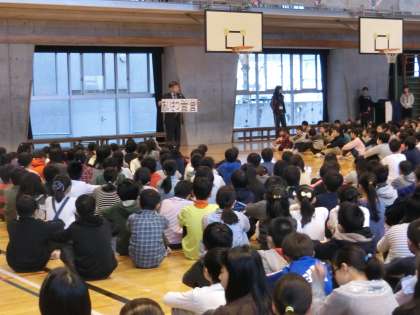 「元気な声で ニコニコあいさつ」という宣言をしました。