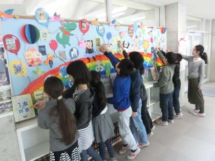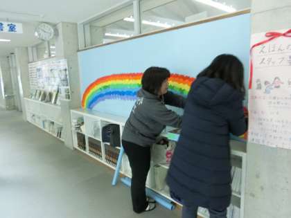 図書室壁面装飾ボランティアの保護者の方々に携わっていただきました。