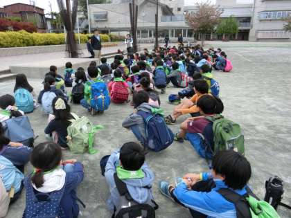 4年生が遠足「こどもの国」に向かって、出発しました。