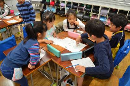 おはじきを使い、点取りゲームをグループで楽しみ、