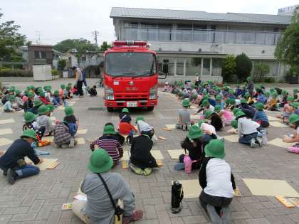 1,2時間目に宮の坂出張所から消防士さんと消防車が来ました。