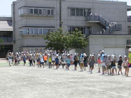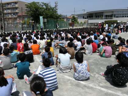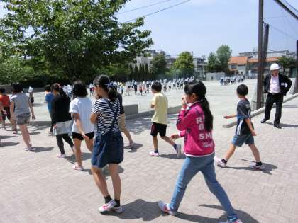 揺れがおさまると、「お・か・し・も」の約束で避難開始。