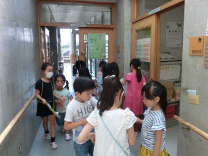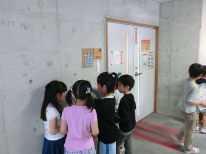 本日は1・2年生合同で学校探検にいきました。