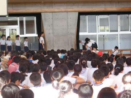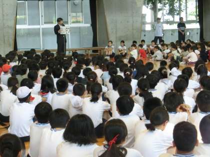 「今朝のあいさつ宣言、自分たちで考え、発表していました。