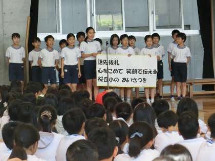『語先後礼・心をこめて 笑顔で伝える 桜丘小のあいさつを』