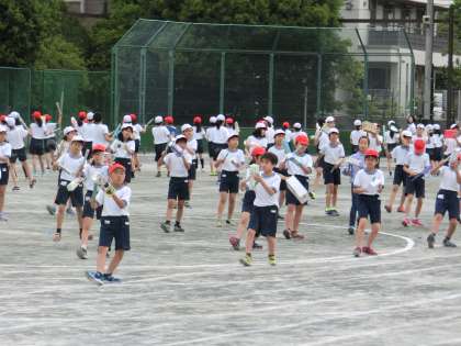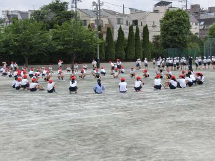 運動会まで10日、校庭での隊形を作っての練習も始まりました。