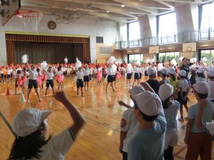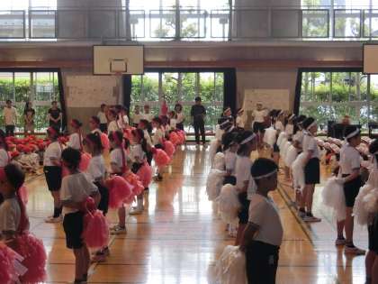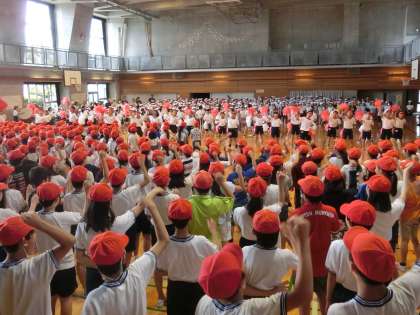 今日の音楽朝会は、体育館で「運動会の歌」を行いました。