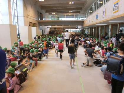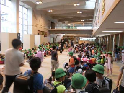 始業前の子供たち、集まれ広場に、