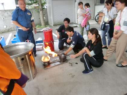 無線機の操作や発電機、バーナーの操作を体験させていただき、