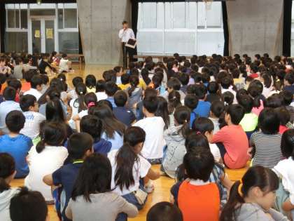 今日の全校朝会、校長先生からは、3つの話がありました。