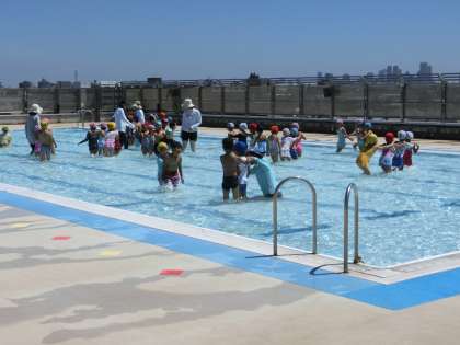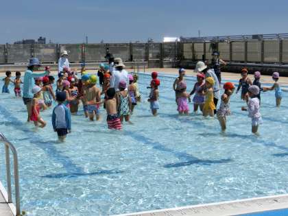 いつもは、水深60cm、80cmで授業を行っているプールを